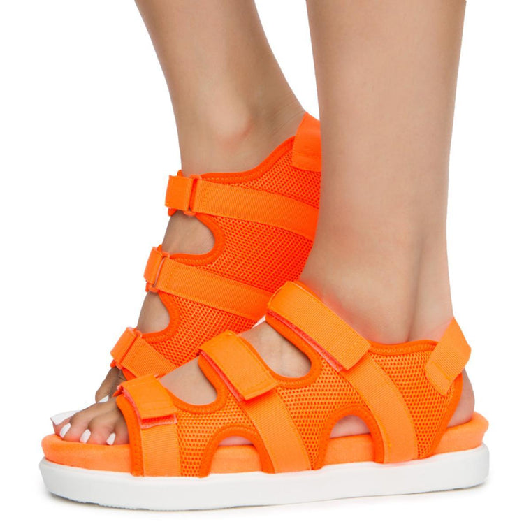 KIKI-26 3 VELCRO STRAP SPORT SANDALS NEON ORANGE MESH
