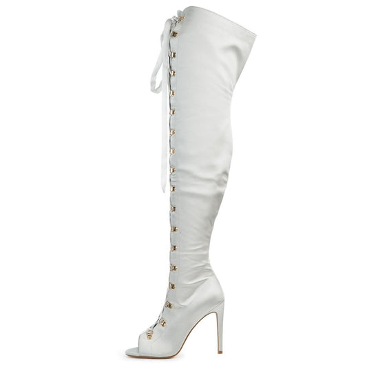 Beautiful-8 Ripped Heeled Thigh High Boots