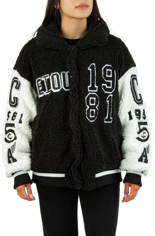 Pick A Vowel Oversized Teddy Varsity Jacket