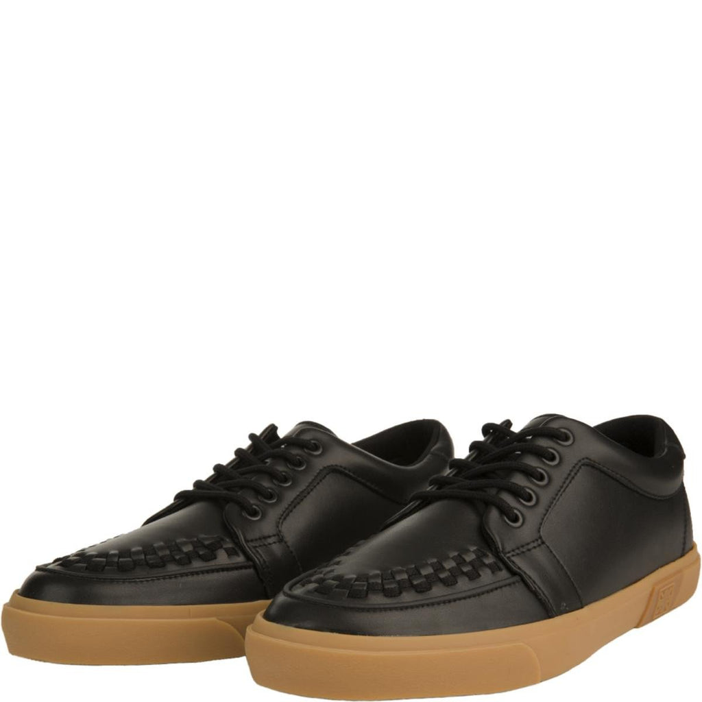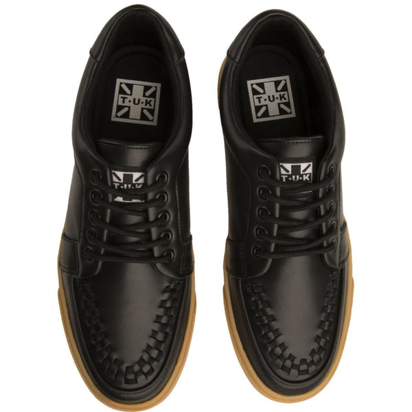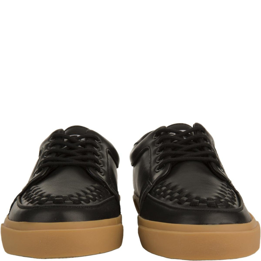 A black soft coated leather upper paired with a gum sole gives these sneakers an air of sleek & hip street style that is sure to impress. Made without traditional D-rings but does include our iconic interlace along the front for that original T.U.K. look.
