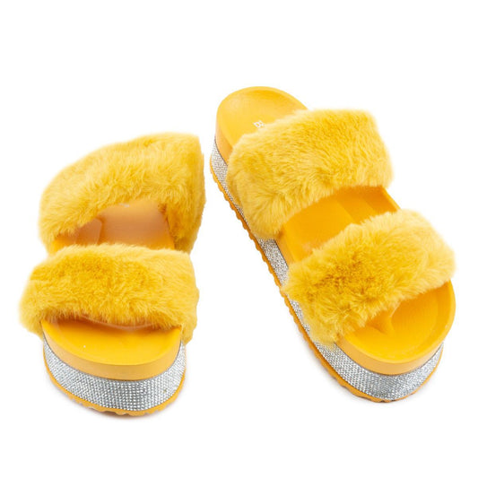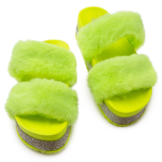 Nighttime-03 Double Band Fur Sandals