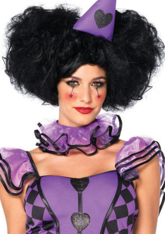 Harlequin wig with clip-on pony tails and adjustable strap in BLACK/RED