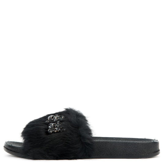 Furry Black Slides BLACK