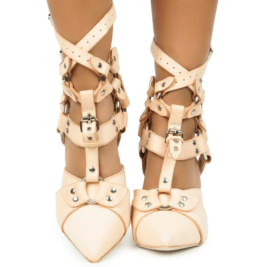 Jeffrey Campbell Rialto Natural Heel Harness Booties Natural