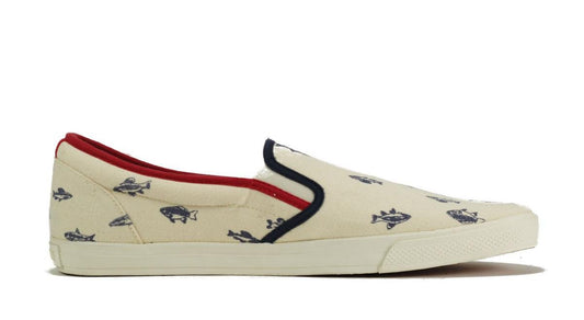 Ben Sherman for Men: Bruce Fishprint Natural Navy Canvas Sneaker