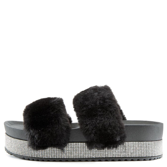 Nighttime-03 Double Band Fur Sandals