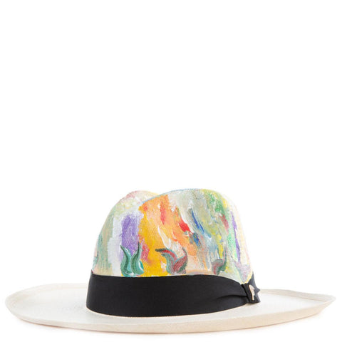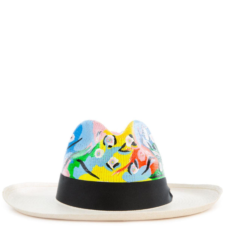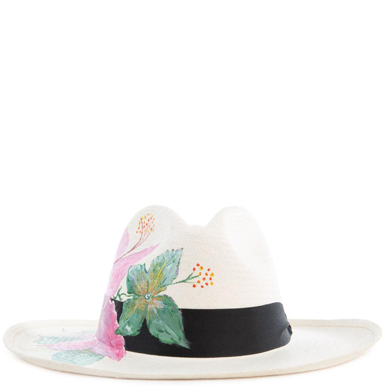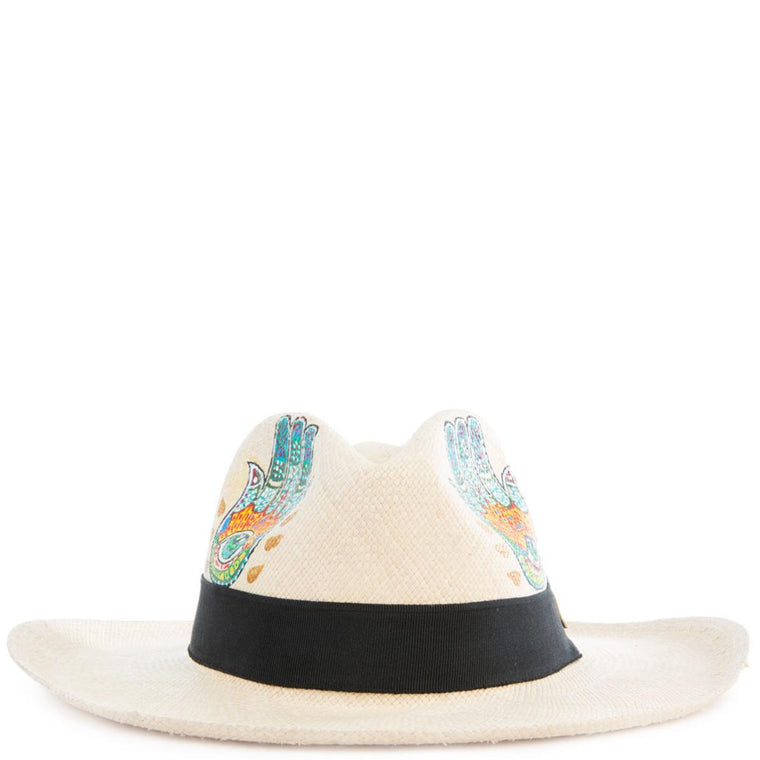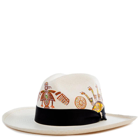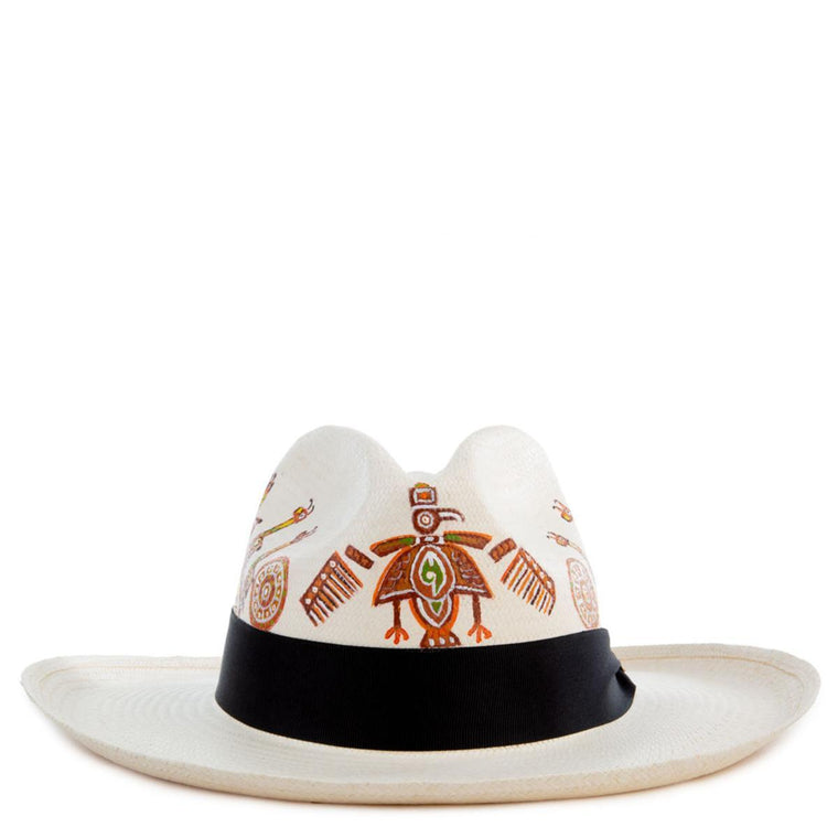These hats are hand-selected for their utility, style, quality, and elegance. The hats are made in Colombia by the world-famous artisans who carry the centuries-old tradition of making hats. Colombian-made Panama hats are famous world-over for their quality and style. Each hat is then hand-painted by the world-renowned Colombian painter Dr. Bedoya. Each one of these hats is a unique piece of art and there is no other like it. These are sure to become a collector's item.