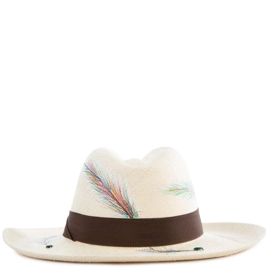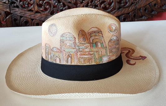 These hats are hand-selected for their utility, style, quality, and elegance. The hats are made in Colombia by the world-famous artisans who carry the centuries-old tradition of making hats. Colombian-made Panama hats are famous world-over for their quality and style. Each hat is then hand-painted by the world-renowned Colombian painter Dr. Bedoya. Each one of these hats is a unique piece of art and there is no other like it. These are sure to become a collector's item.