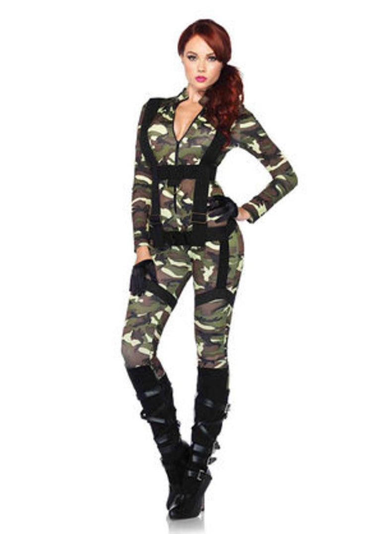2PC.Pretty Paratrooper,zipper front camo jumpsuit and body harness in CAMO
