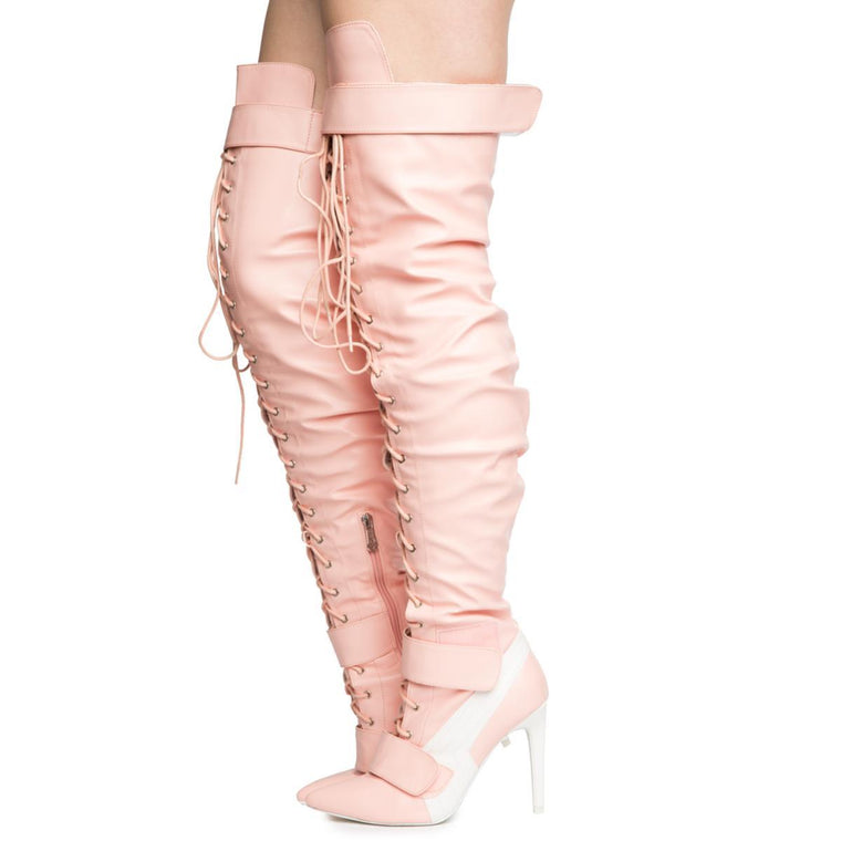 Cape Robbin Gigi-6 Pink Heeled Thigh High Boots Pink