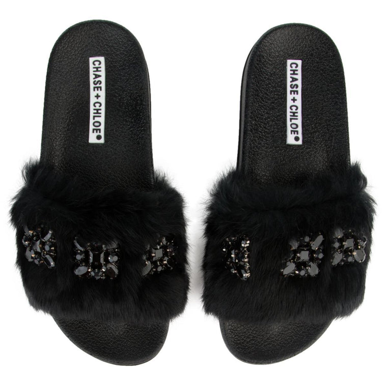 Joy-1 Black with Flowers Sandals BLACK