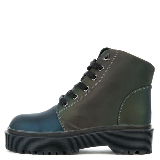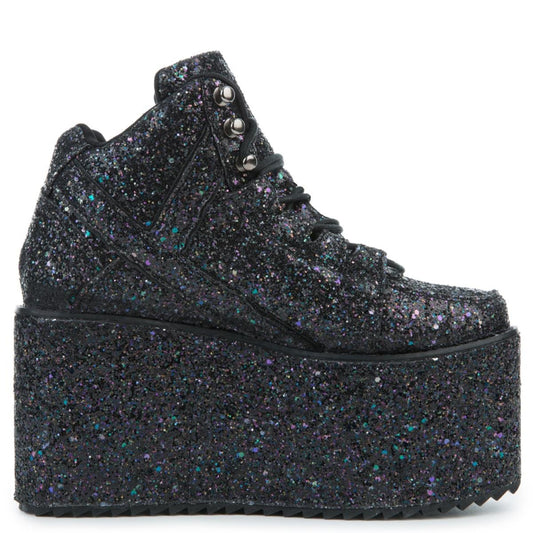 The effervescent, holographic, explosion of popular culture, textures, and unexpected aesthetic of retro and far-out is hallmark of Y.R.U. Combined with Tilted Sole, founded to fit any lifestyle and offering unparalleled customer service, popular designs such as the Lillu Multi Oxford, Craft Harness Heel Bootie, Nightcall Hologram Platform Heel, and Diive Reflective Heel Boot are sure to whet every appetite for work and personal attitudes the world over.
