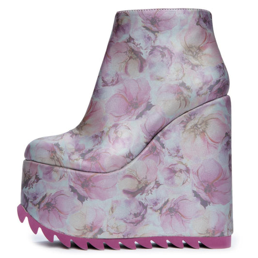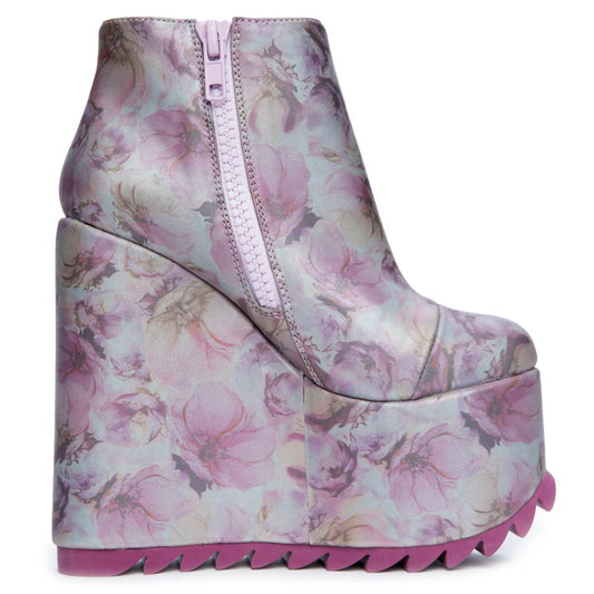 YRU Dimension Women's Lavender Floral Platform Wedged Booties