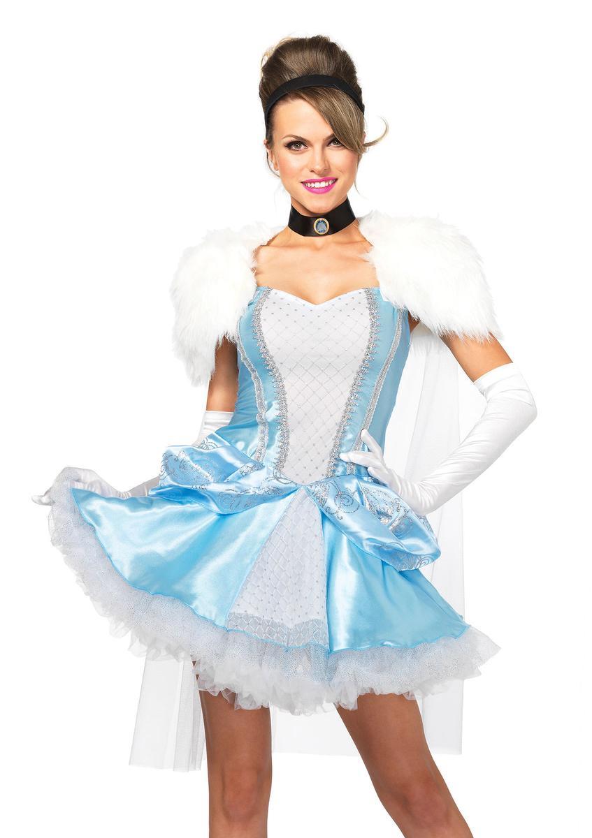 The 3PC. Slipper-less Sweetie, Dress, Attached Fur Caplet, Choker, Head Piece in Blue and White