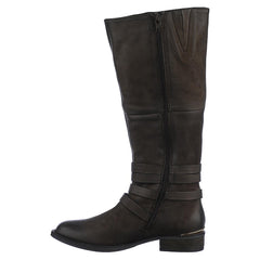 Casual riding boots from the Steve Madden collection. The Albany features a leather upper, rubber outsole, adjustable ankle straps, full side zipper, an a lightly cushioned insole. Pair off the boots with skinny jeans and a button down shirt.
