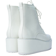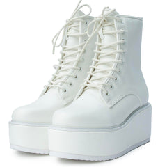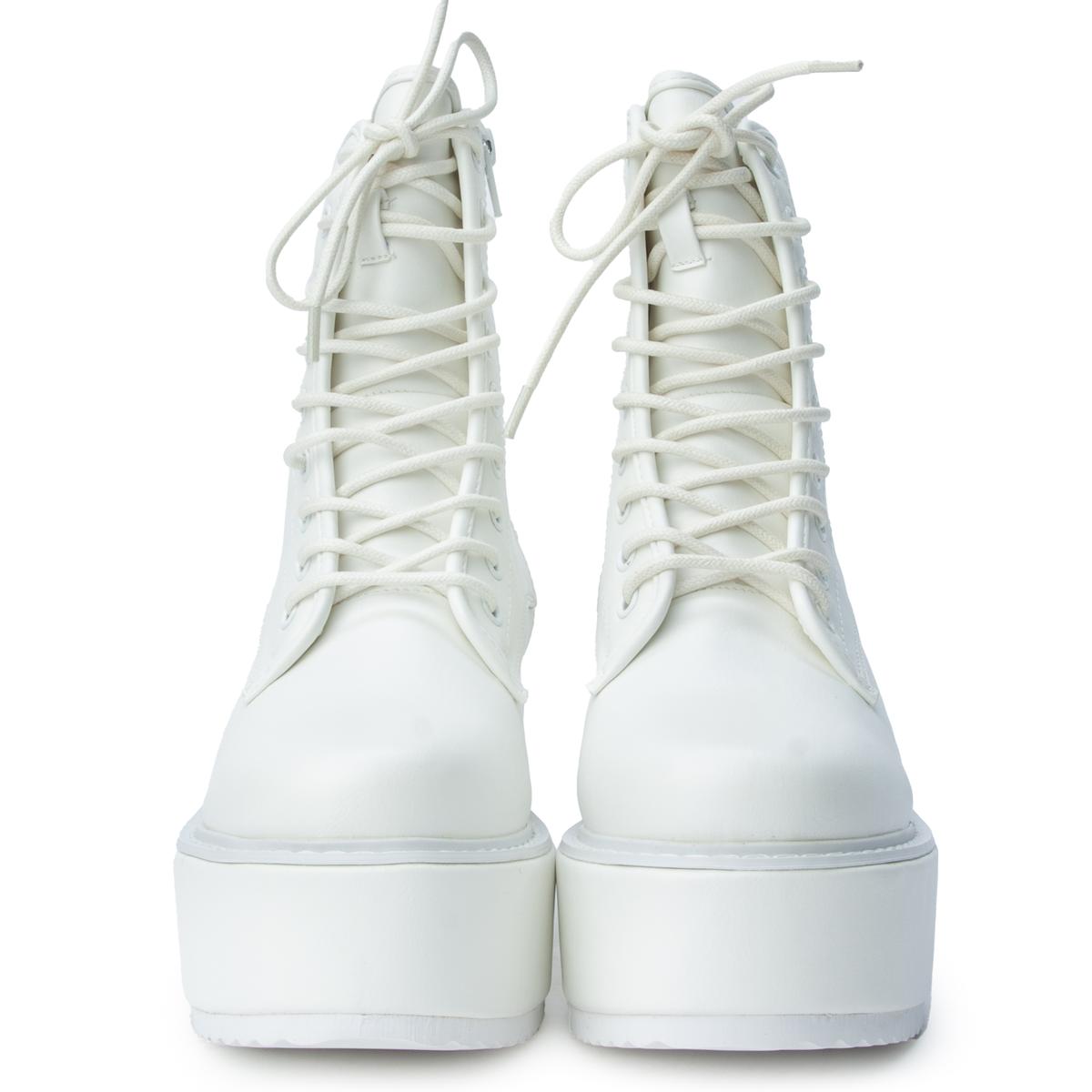 Standing on a thick, elevated rubber sole, the Archer Platform Bootie is a contemporary interpretation of the classic combat boot. This carries an synthetic leather upper, and is finished with laces, a side zipper and a pull on tab.