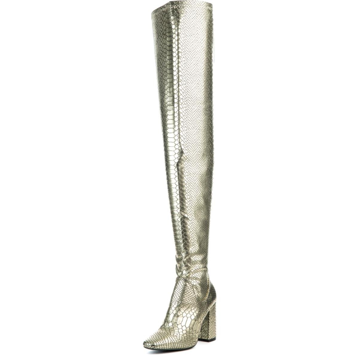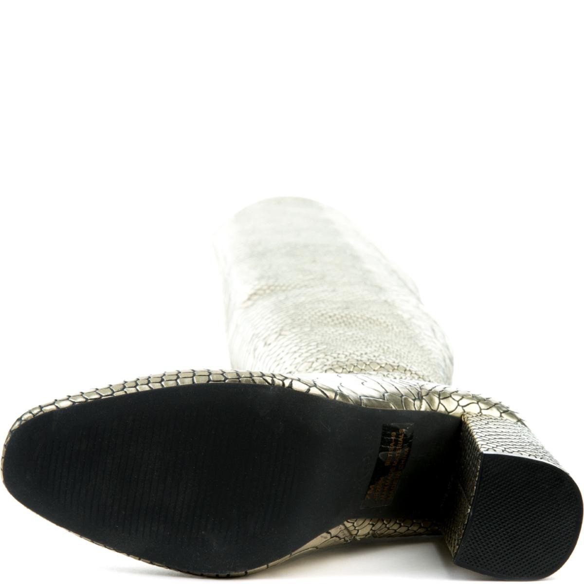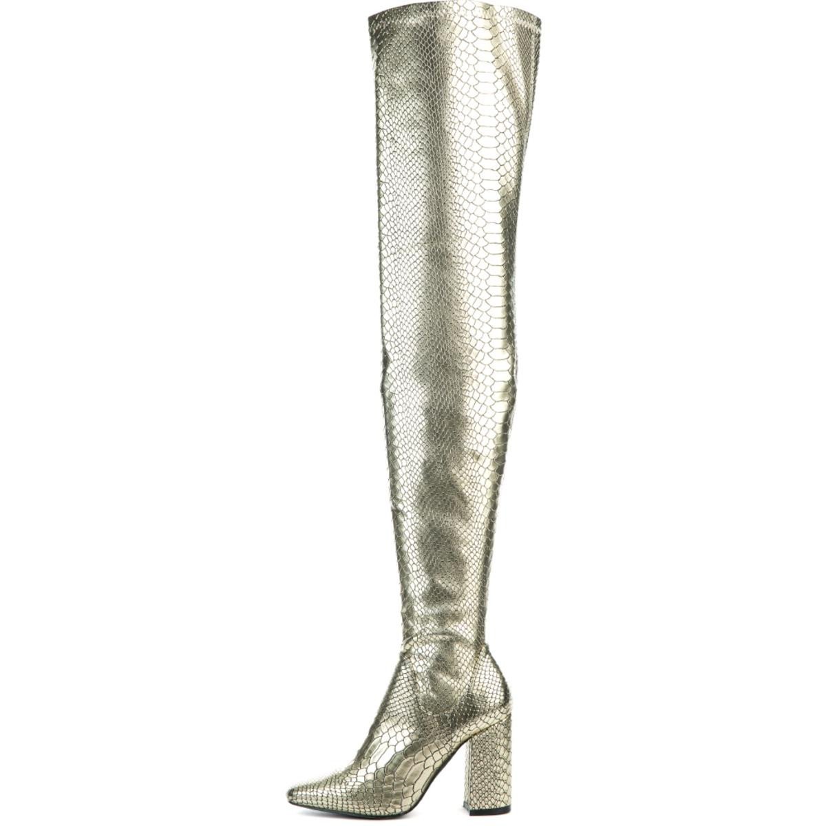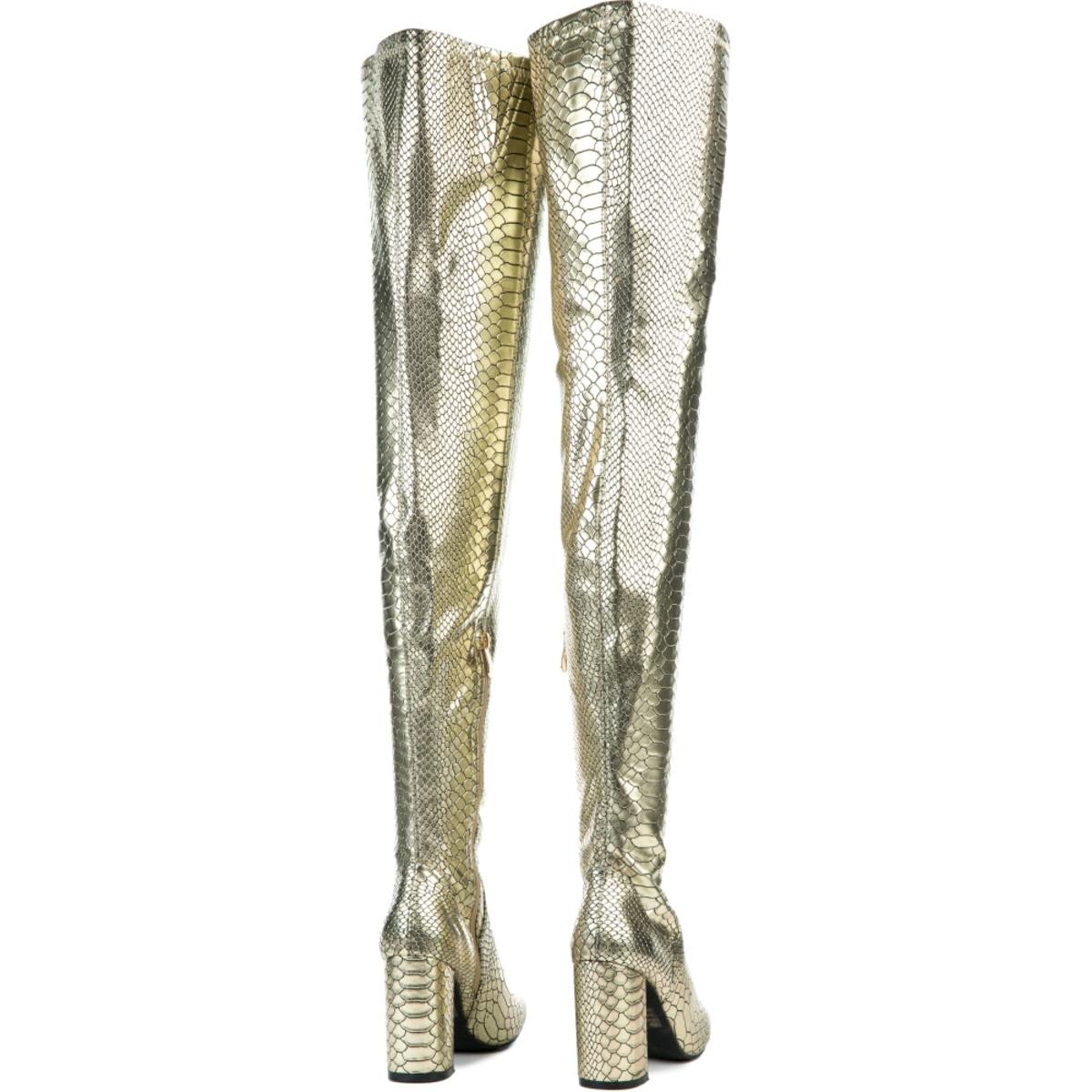 Snake skin is hot and gold makes it even hotter. Add some sizzle to your step with these boots. Style them best with a black skirt for a cool look.