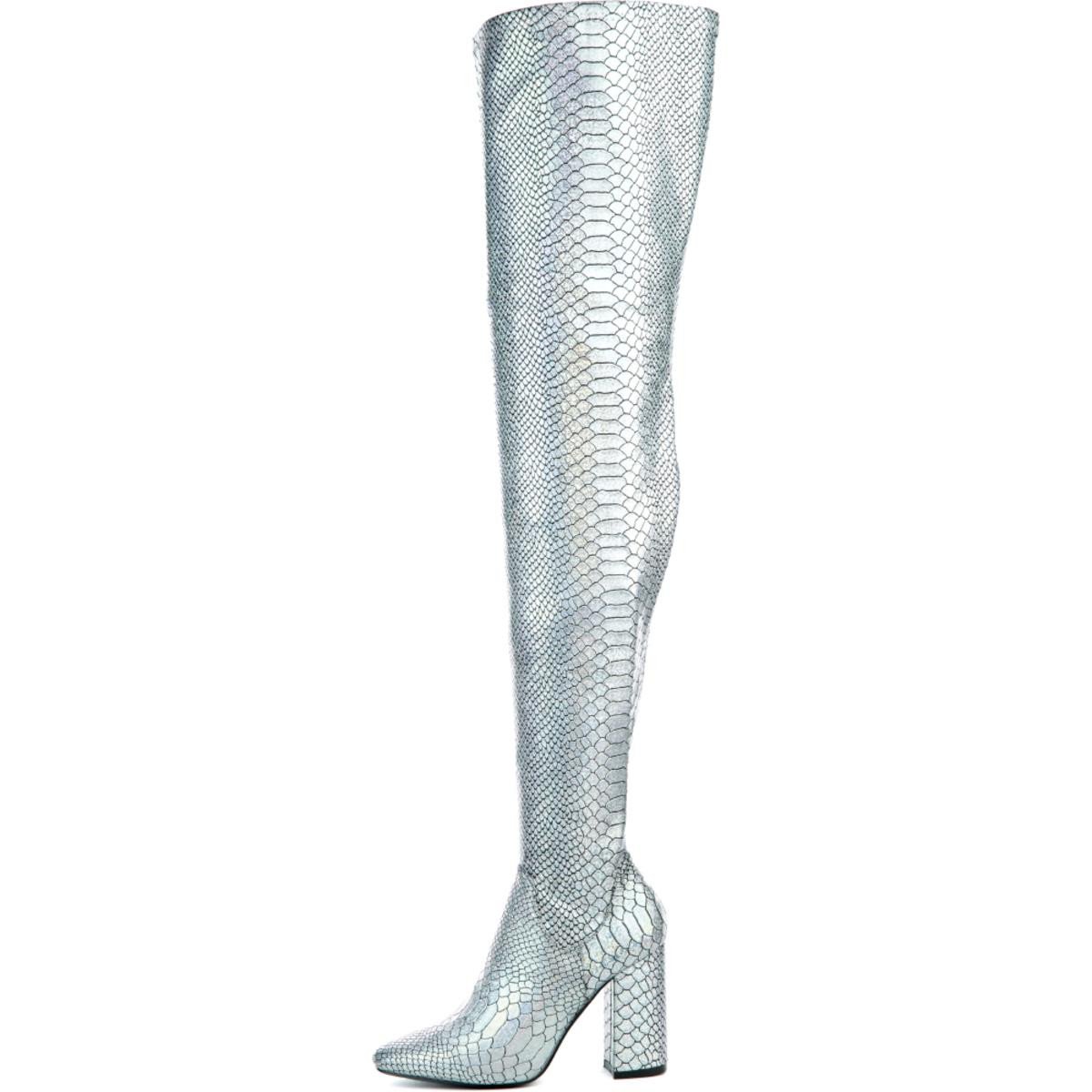 Snake skin is hot and gold makes it even hotter. Add some sizzle to your step with these boots. Style them best with a black skirt for a cool look.