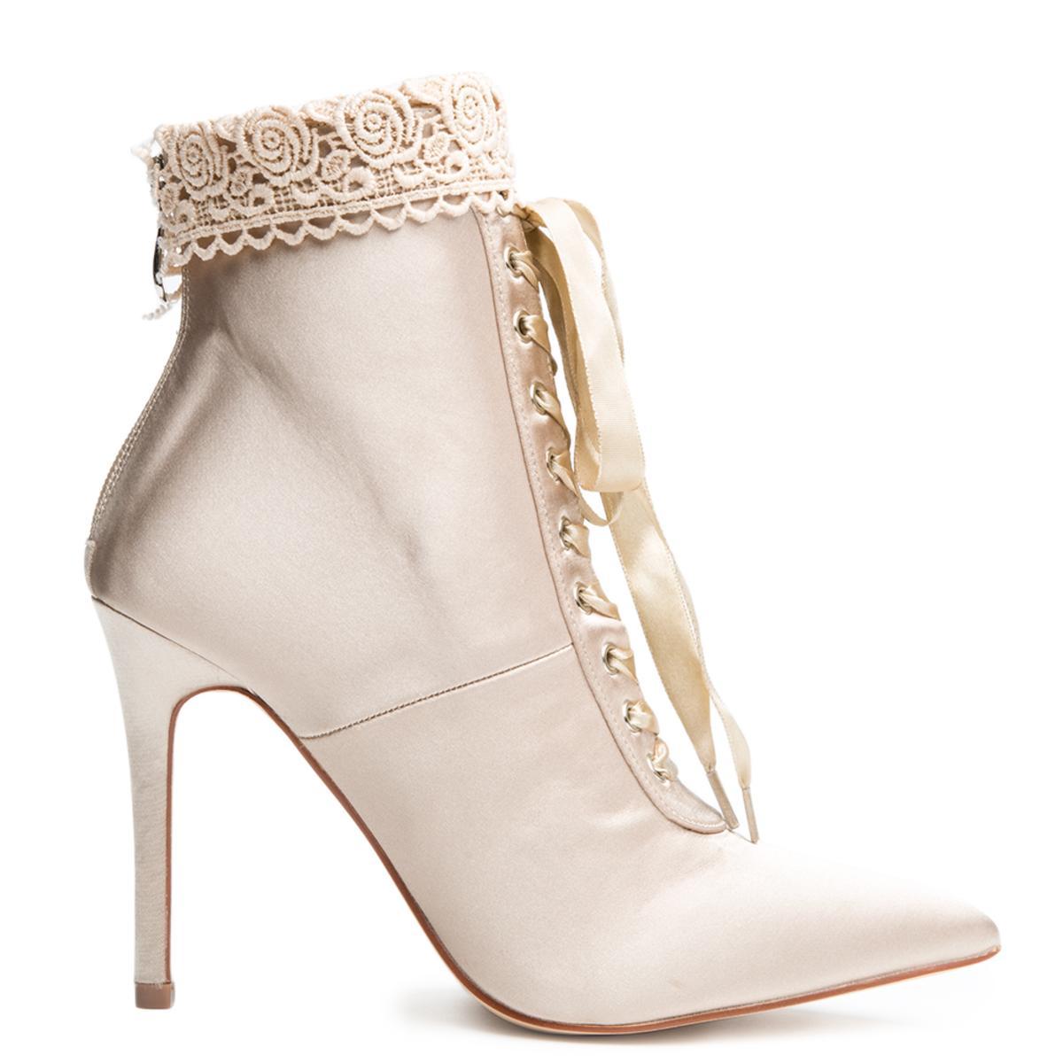 Step up your bootie game girl, and snatch up the Mini-3. Featuring a beautiful satin upper and lace overlay, this heel is for sure to turn heads as you stroll down the street.