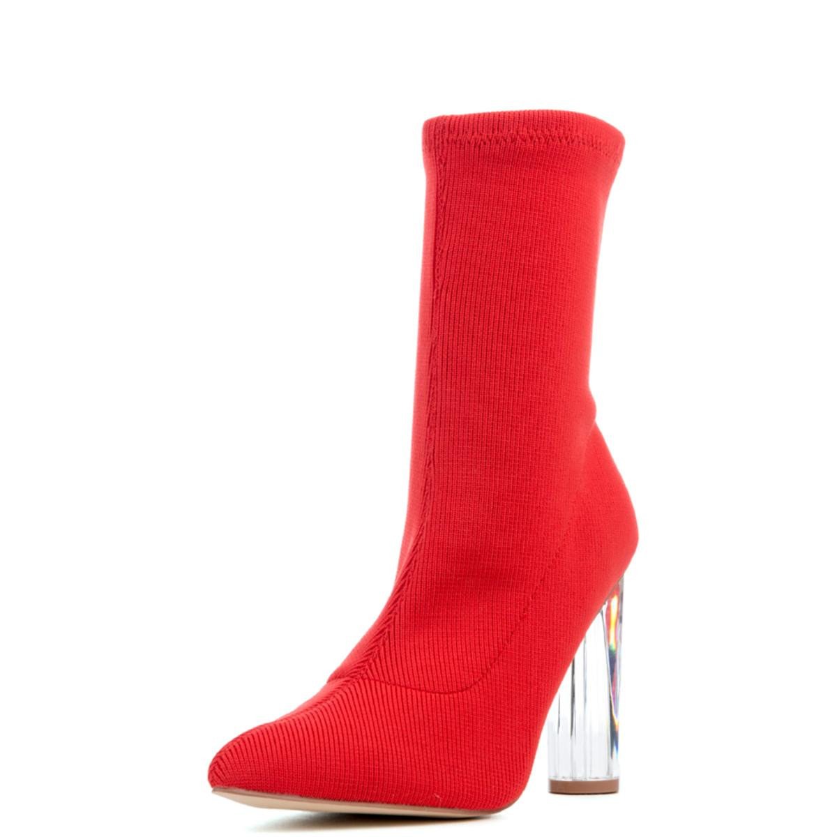Show off your fun style with fun boots! The bold color is just what you need and it’s matched perfectly with a clear heel to set the look. Pair these with jeans or a short dress. You won't regret it.
