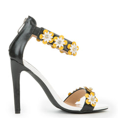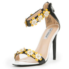 We are forever in flower power mode. Never say "No" to a cute flower design! The studded shapes and decal makes this a great heel to go with a baby doll dress.