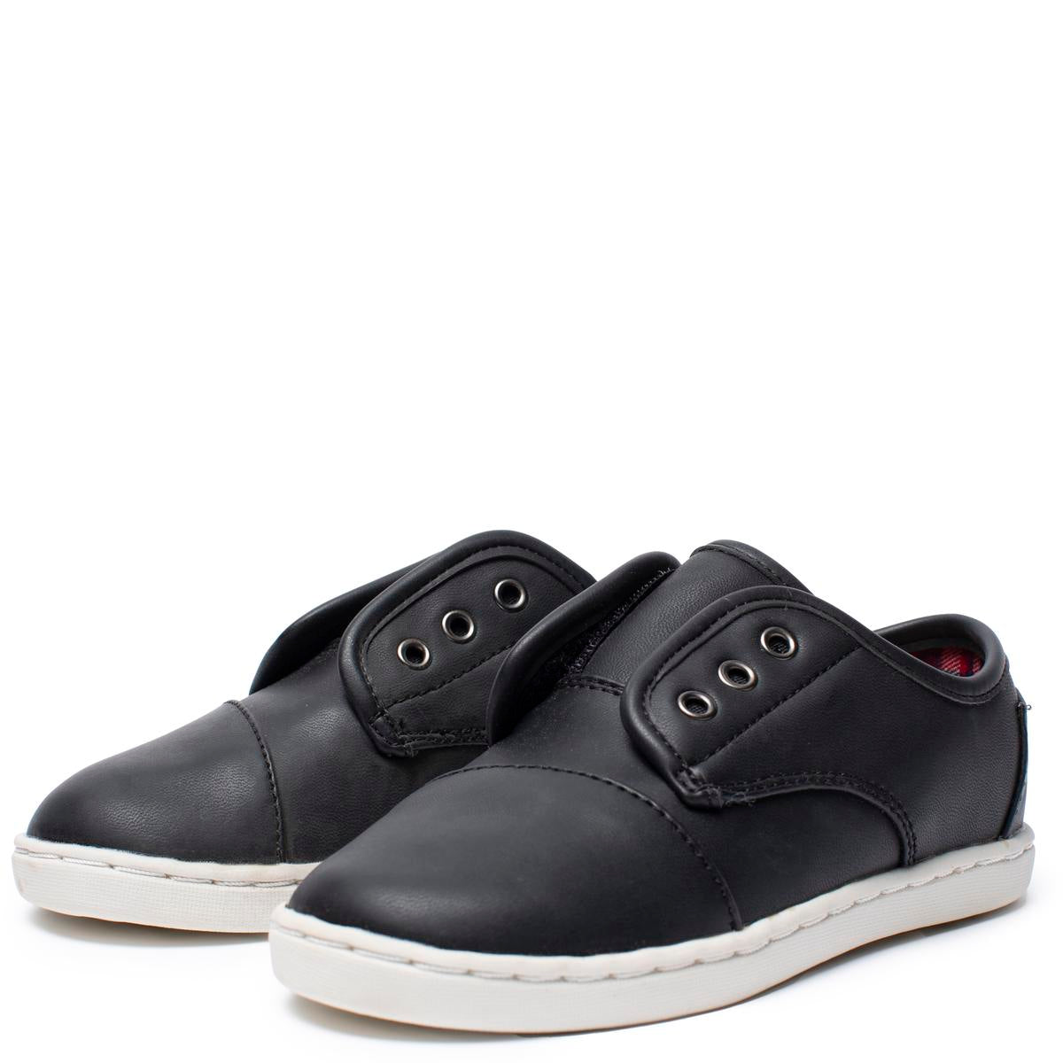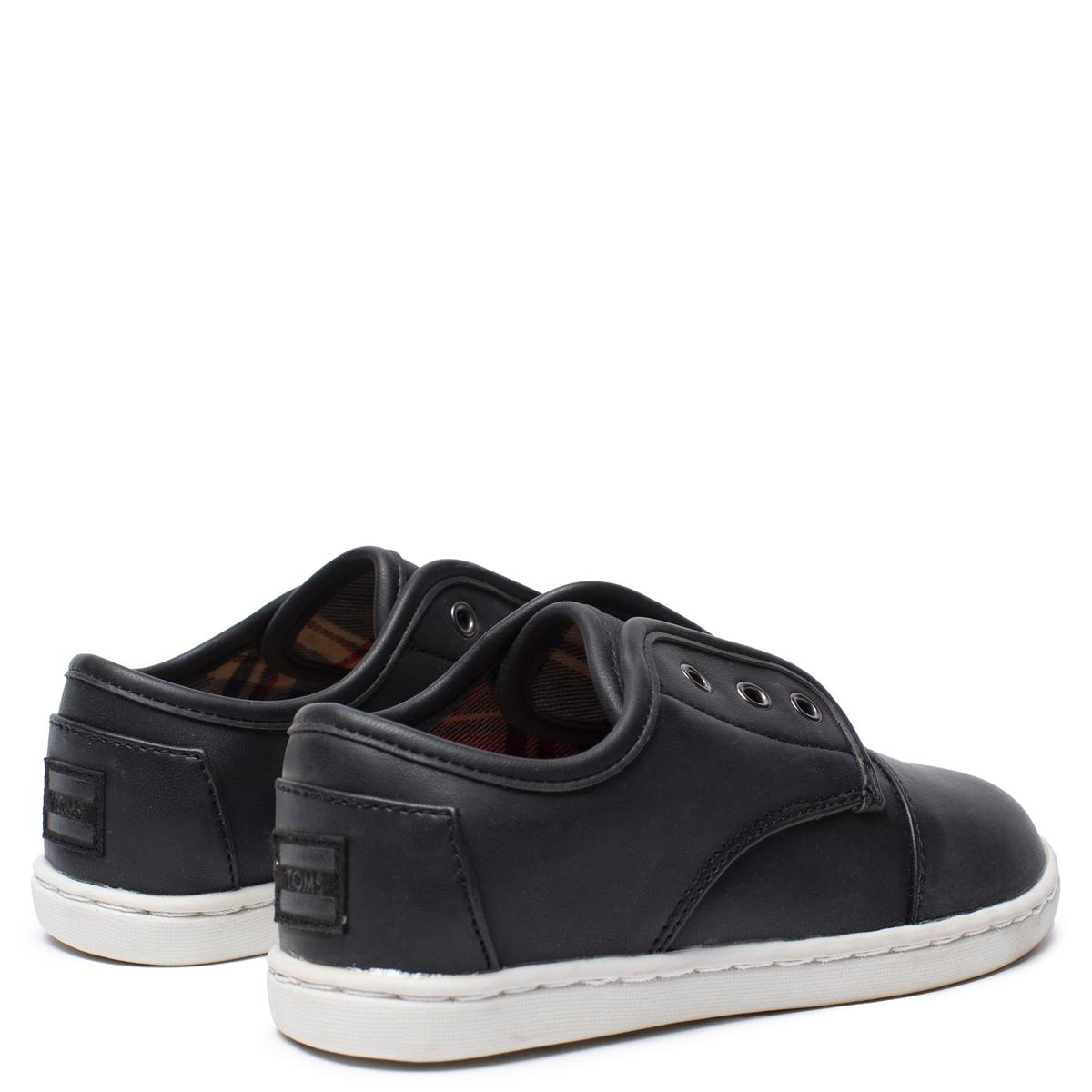TOMS FOR KIDS: PASEO BLACK SYNTHETIC LEATHER -