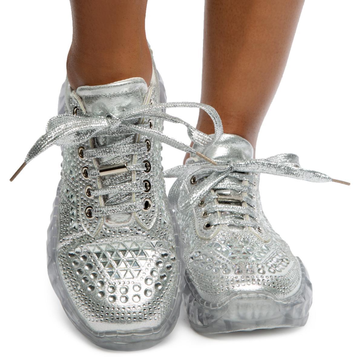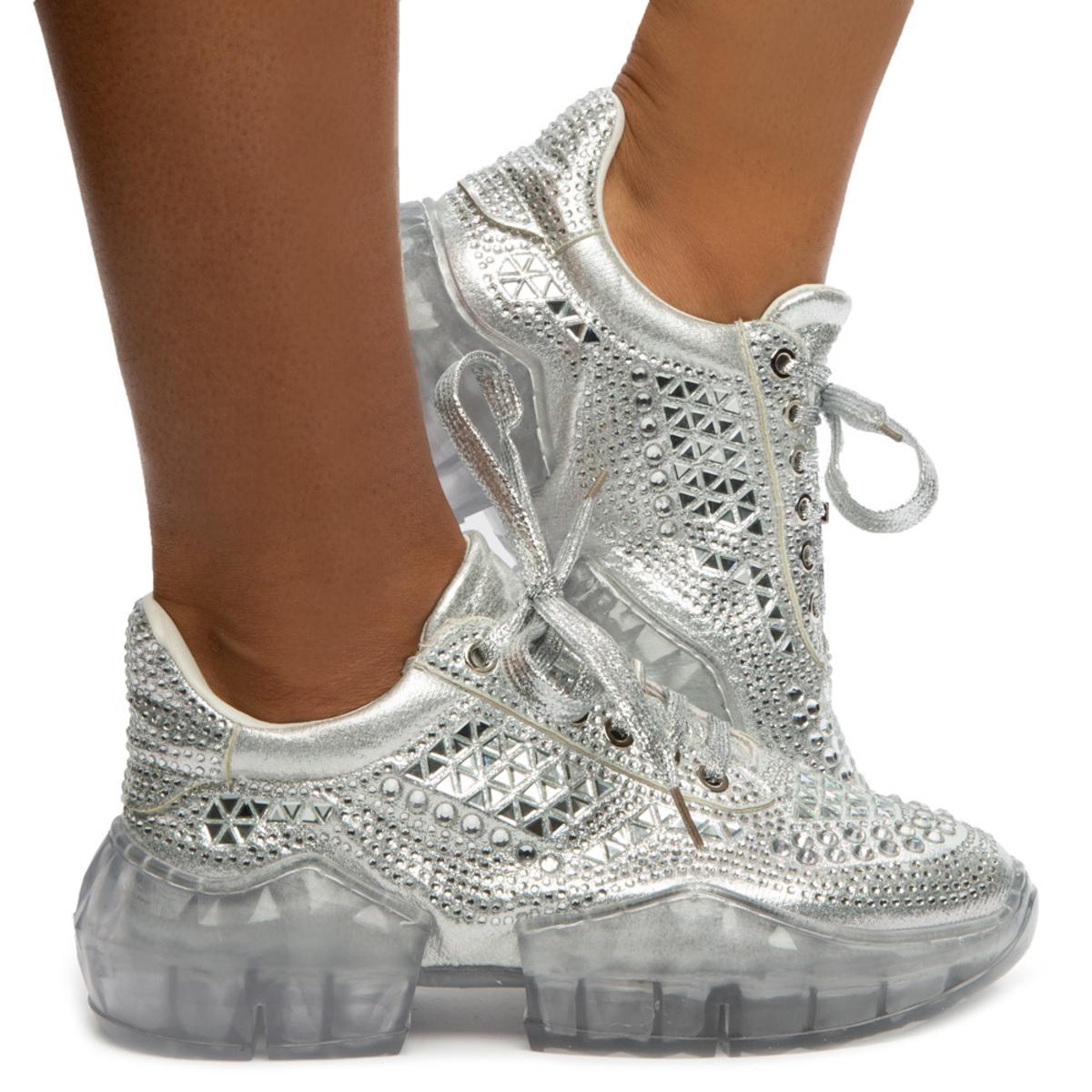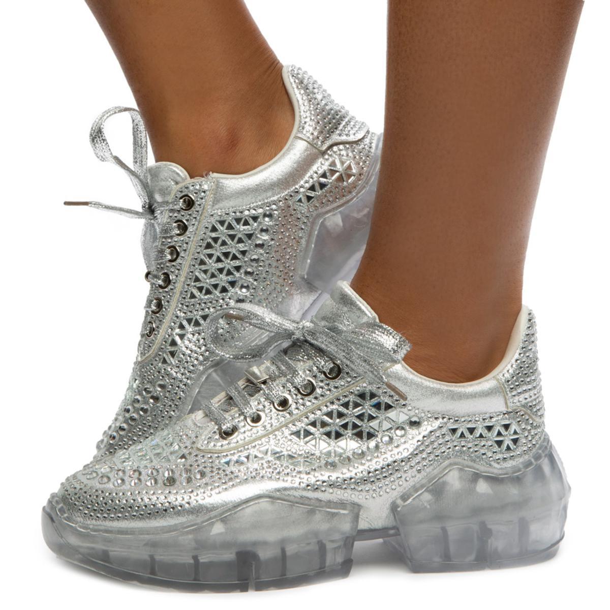 Step away from your regular sneakers and grab the Crystal-6 Lace Sneakers! Featuring a mixture of synthetic and rubber mixtures, a stunning studded design, and sparkly laces.