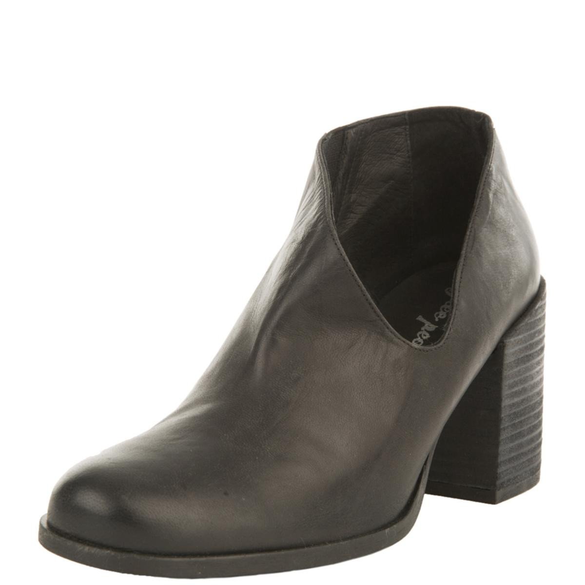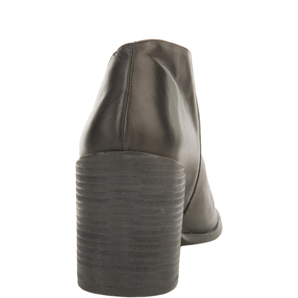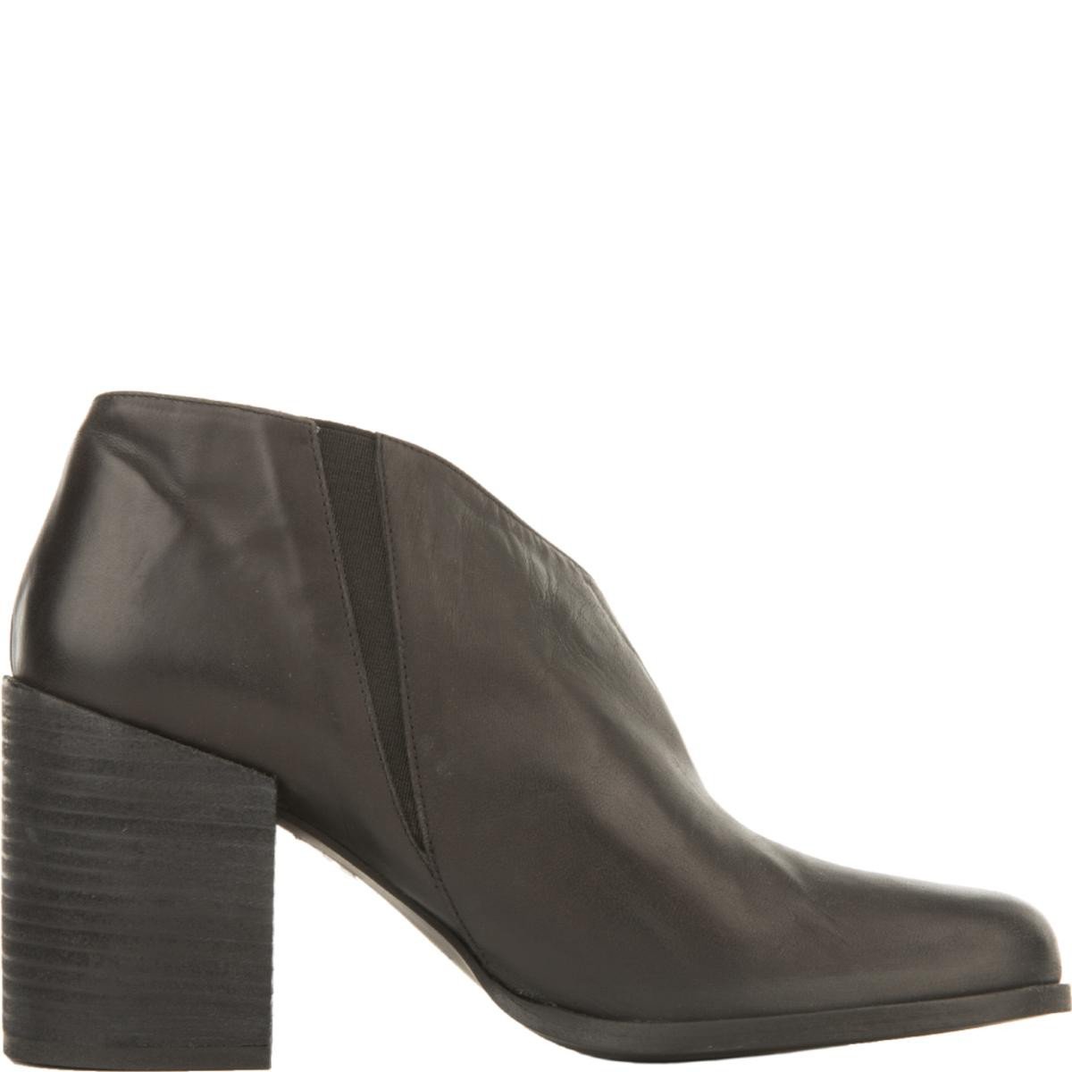Ankle boots with open side cutout detail and large chunky block heel. Subtle elastic accent creates an easy on-off.