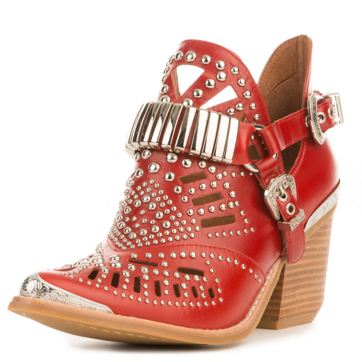 Jeffrey Campbell Calhoun-4 Red Western Heeled Booties Red