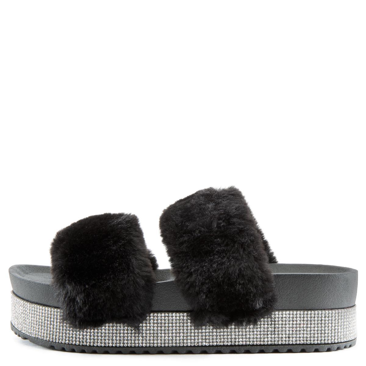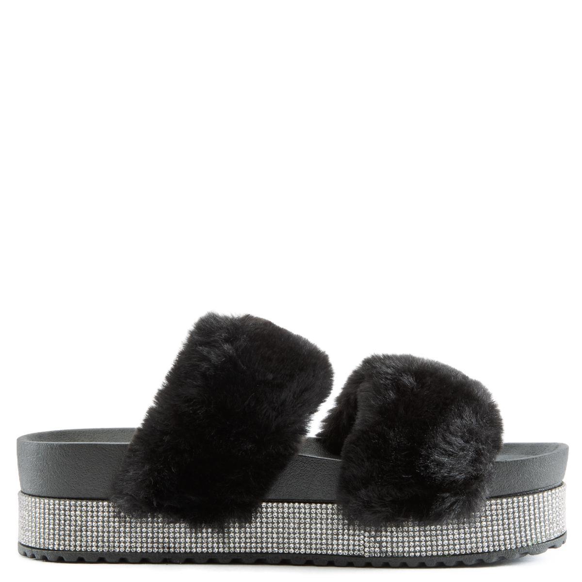 The women's Nighttime-03 Double Band Fur Sandals are cute and cuddly to make your outfit pop!