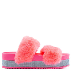 The women's Nighttime-03 Double Band Fur Sandals are cute and cuddly to make your outfit pop!