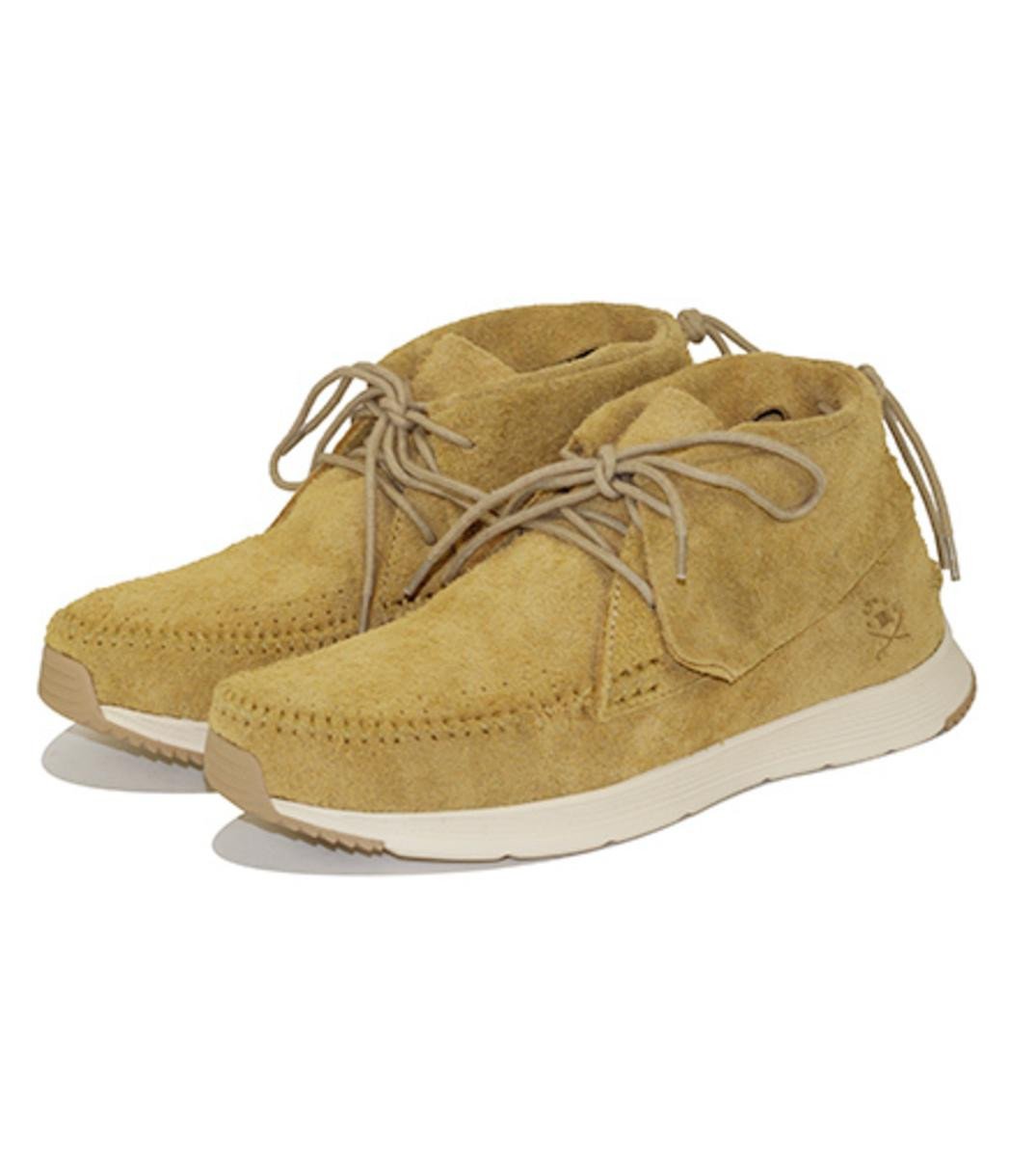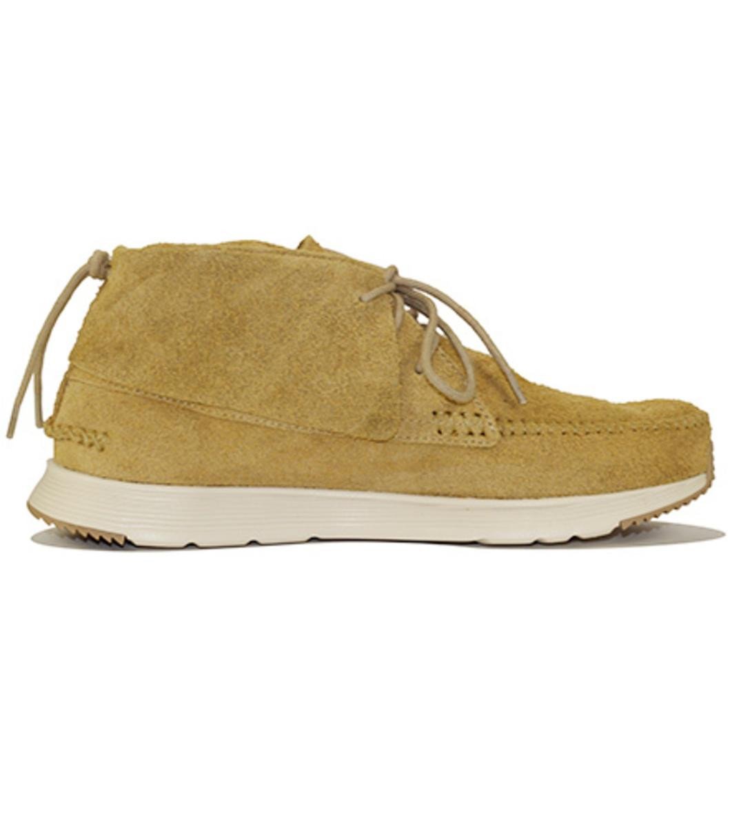 SITTING ON THE FEATHER LITE EVA INJECTION OUTSOLE WITH RUBBER INLAYS FOR TRACTION. OFFERED IN A SOFT NATURAL HAIRY SUEDE UPPER.