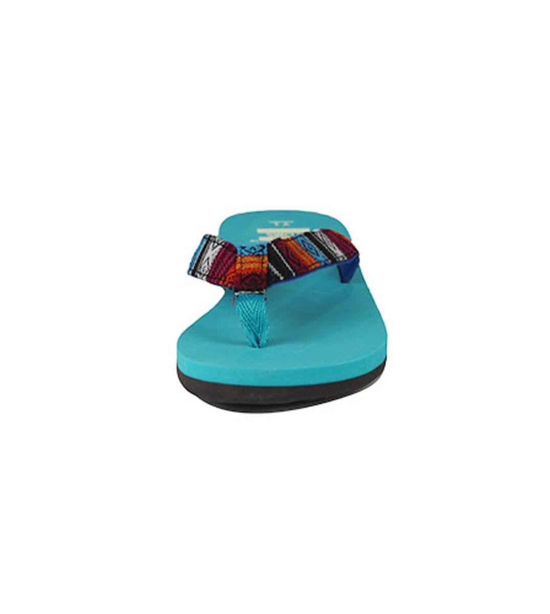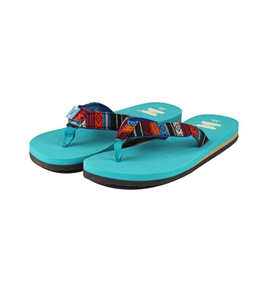 Take life in stride in a pair of flip flops featuring vibrant summer hues, accentuated with an eclectic woven fabric. The cotton toe post and EVA cushioning add an element of comfort for wearability.