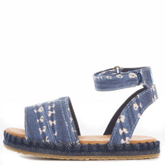 The Navy Batik Stripe Malea sandle is as cute as it is comfortable. It provides a cushioned insole for the little princess that likes to run all day long.