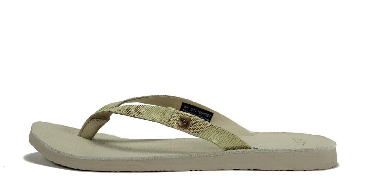 UGG Australia: Ally Lizard Blank Canvas Sandal. Equal parts relaxed and refined, the Ally II reinvents the classic flip-flop with clean lines, gold foil lizard suede straps, and a lush leather footbed. Crafted with a whisper of a wedge for flattering comfort, this leather beach flip-flop is what women of style will live in this summer.