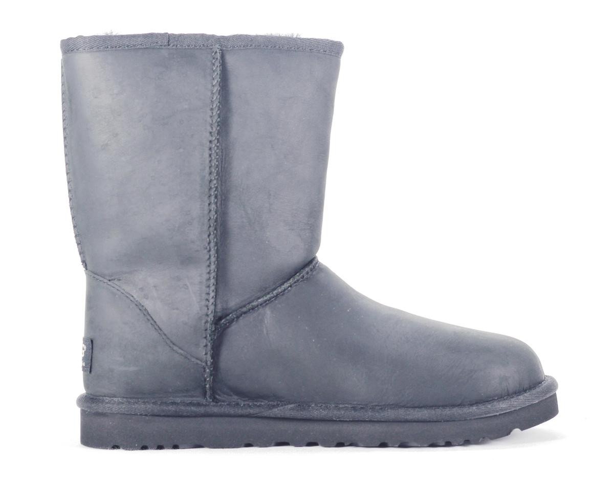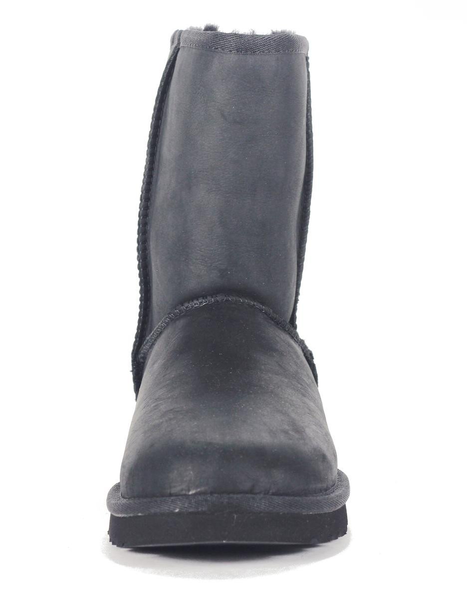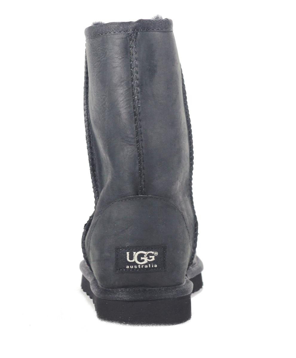 UGG Australia: Classic Short Leather Black Boot. Showcasing all the characteristics of the Classic Collection, the Classic Short Leather keeps feet dry and comfortable with a waterproof upper, moisture-wicking interior and lightweight, moulded-EVA outsole with patent-protected tread design.