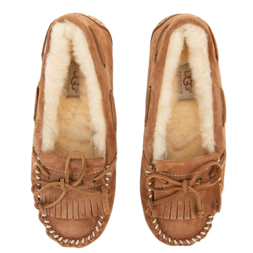 UGG Australia: Meena Chestnut Suede. the Meena offers the flexibility and comfort of a driving loafer, with UGG® Australia’s signature touch of sheepskin in the insole. No-fuss style-setters will appreciate the decorative r whipstitch details and unique leather multi-bow lace on these slip-on moccasins.