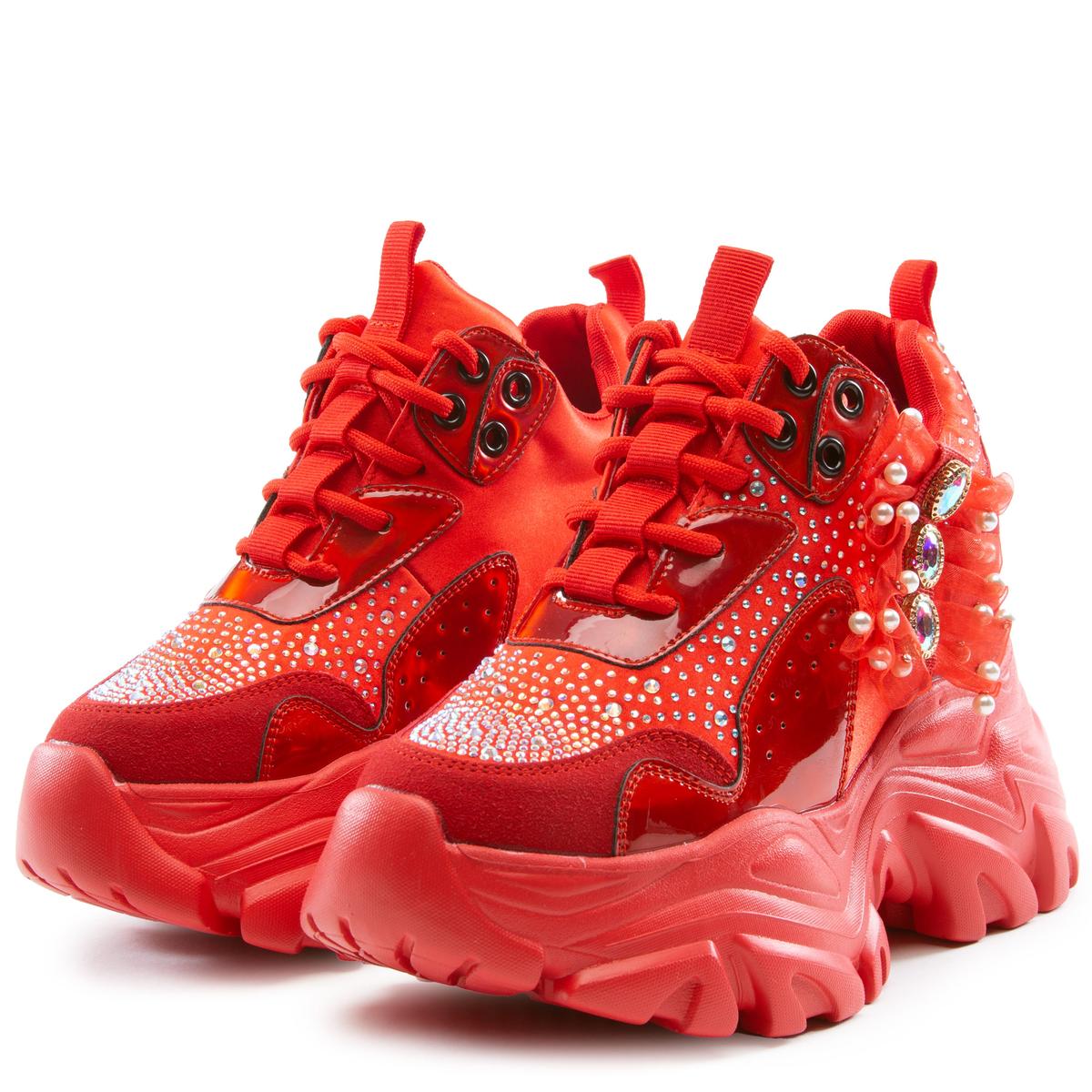 The Watermelon-02 Rhinestone Platform Sneakers have so much personality to them. With rhinestones all along the upper, to a cute bedazzled bow on the side, to a high chunky platform- these sneakers will serve whatever look you're aiming to achieve.