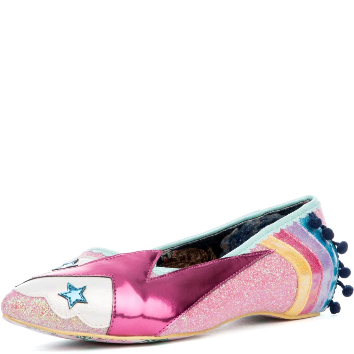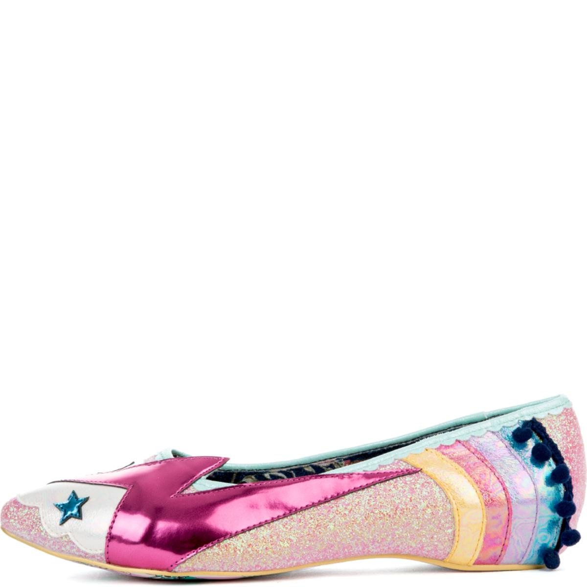 Embrace your inner funky self with the women’s Ground Control flats, featuring rainbows, pom poms, and glitter.