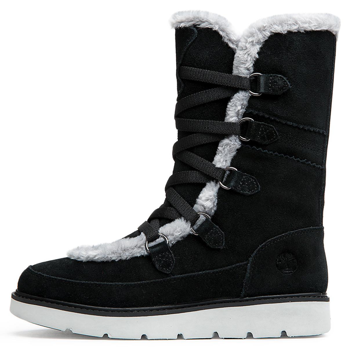 Chic, comfortable, and classic. The Women's Timberland Kenniston Muk Tall Boot features a classic lace-up, fur lining, and a suede top. With a feminine height and textured wedge heels, this boot pairs well with skinny, boot-cut, or slim-cut jeans with a plaid button down blouse or sweater.