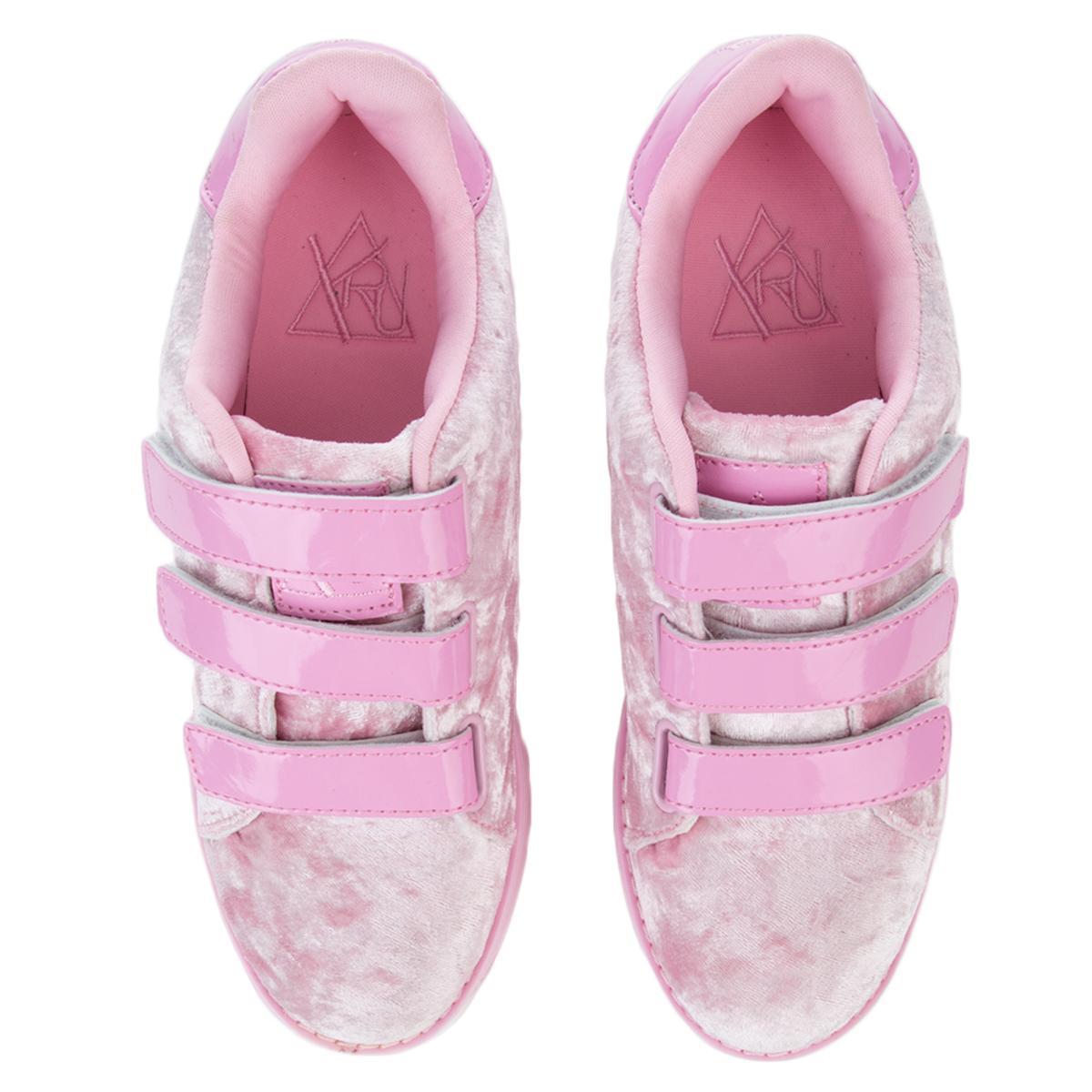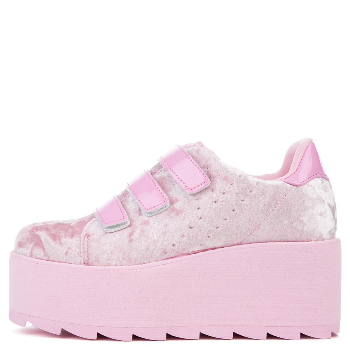 YRU LaLa Velcro Pink Velvet Platform Sneakers PINK