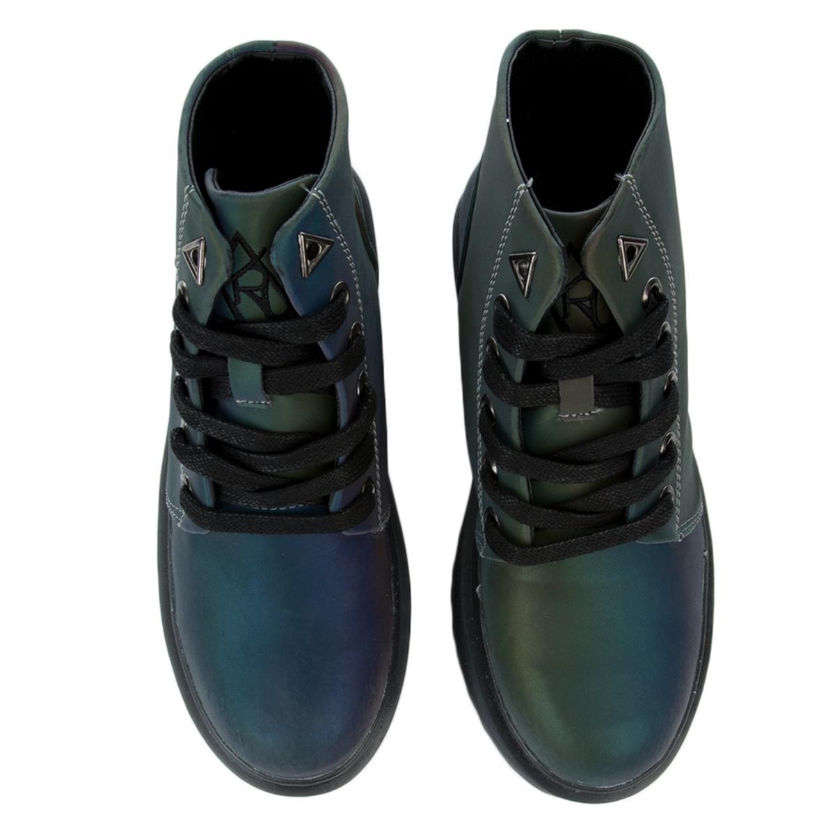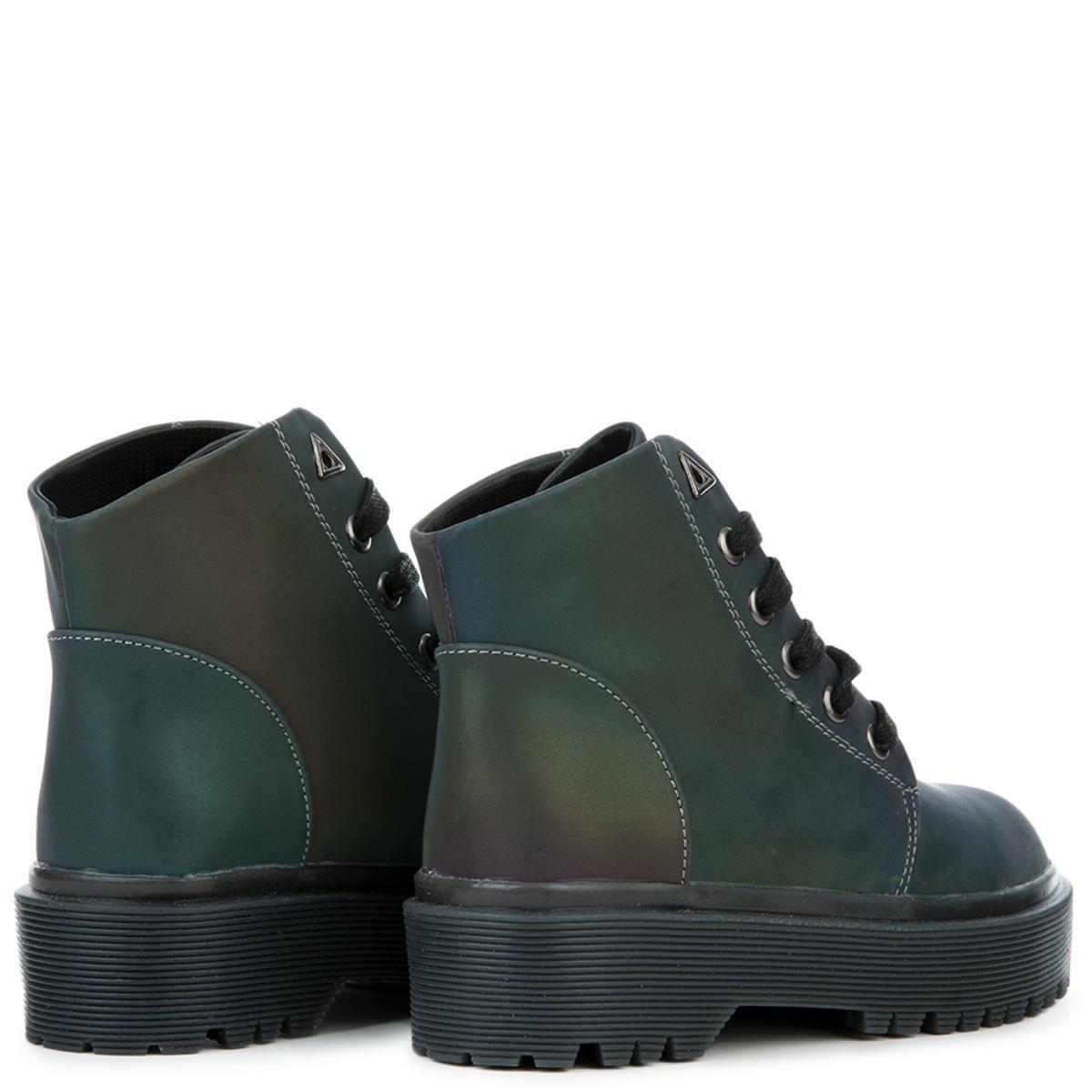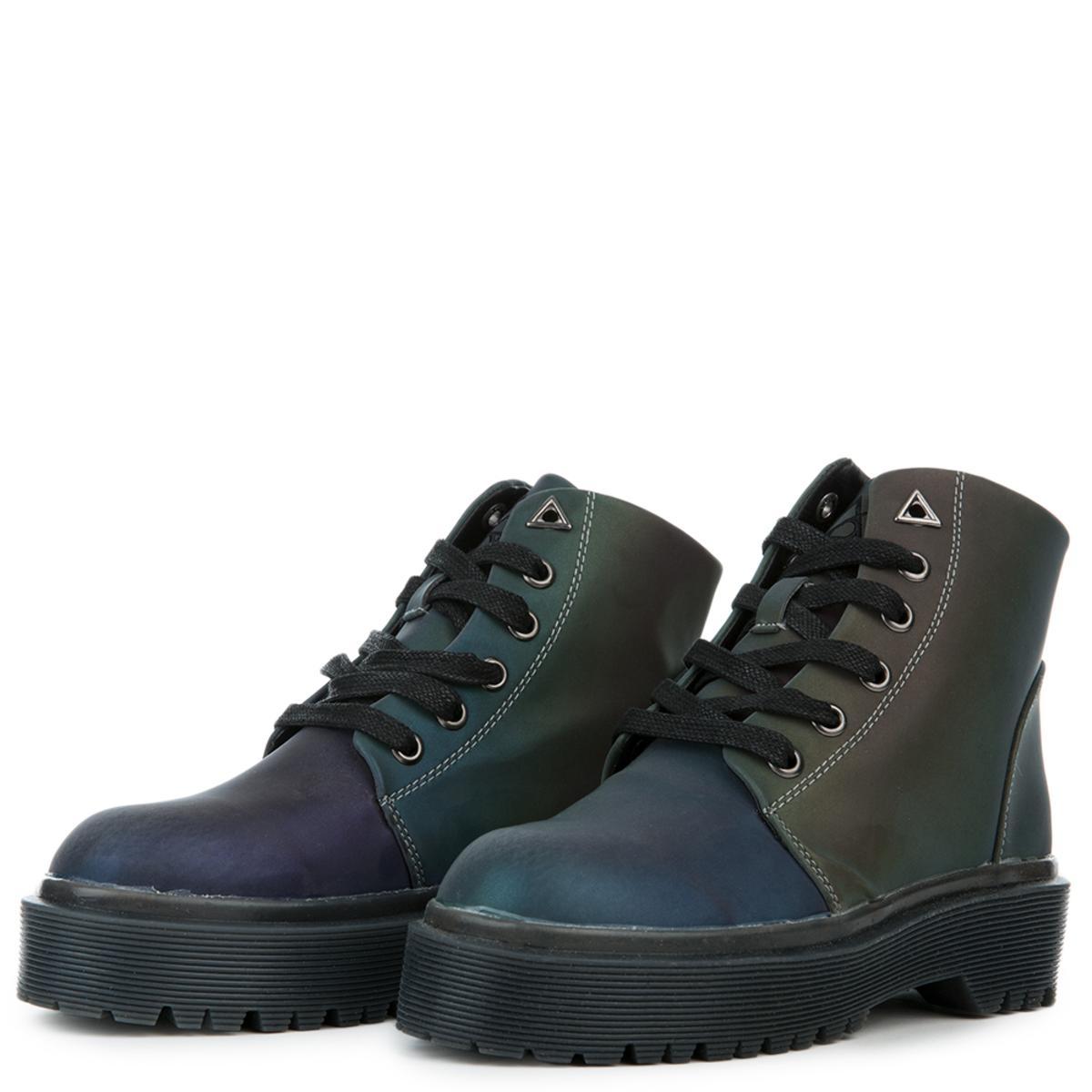 These Y.R.U boots are off the top! It features an iridescent reflective upper and a 1 ½-inch platform. You'll look rad in these boots with a school girl skirt and a cute top.